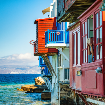 Despite the island’s considerable guest development, it has preserved the Cycladic physiognomy and many of its traditional components in a unique way, featuring the iconic Cycladic architecture, with whitewashed dwellings and blue-domed churches. Its distinctive feature is the picturesque traditional windmills in the town and the Little Venice, consisting of colorful cafes and houses alongside the water, where guests may enjoy the romantic sunset and capture the sun light washing up the main town.