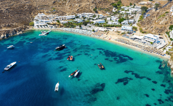The island also boasts wonderful beaches for every taste, whether buzzy or isolated, pebbly or sandy, with emerald, azure, or deep blue waters. Some of the most popular include Scorpios, Super Paradise, Platis Gialos, and Lia. Most of the beaches in Mykonos are organized, with seaside restaurants and beach bars, one of the most beautiful non organized beaches in the island close to Chora is Agios Sostis beach ,a favorite for both locals and travellers.